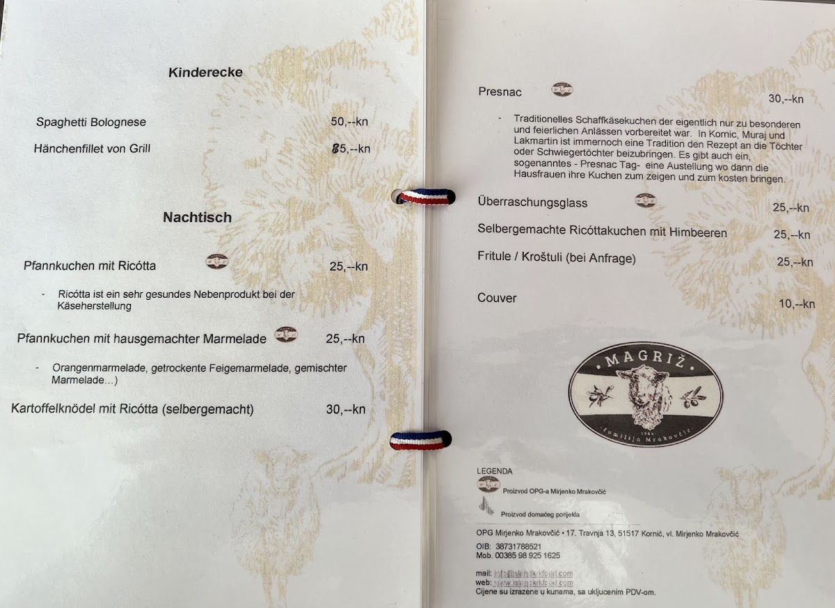 KUŠAONA MAGRIŽ Vesna Mrakovčić is a charming family-run country food restaurant nestled in the heart of Krk, Croatia. This hidden gem seamlessly blends tradition and craftsmanship, offering an authentic taste of the region through its homemade cheeses, olive oils, and farm-fresh produce. Every dish tells a story – from the rich, creamy cheese crafted on-site to the flavorful local prosciutto and handmade pasta that capture the essence of Croatian countryside cuisine.